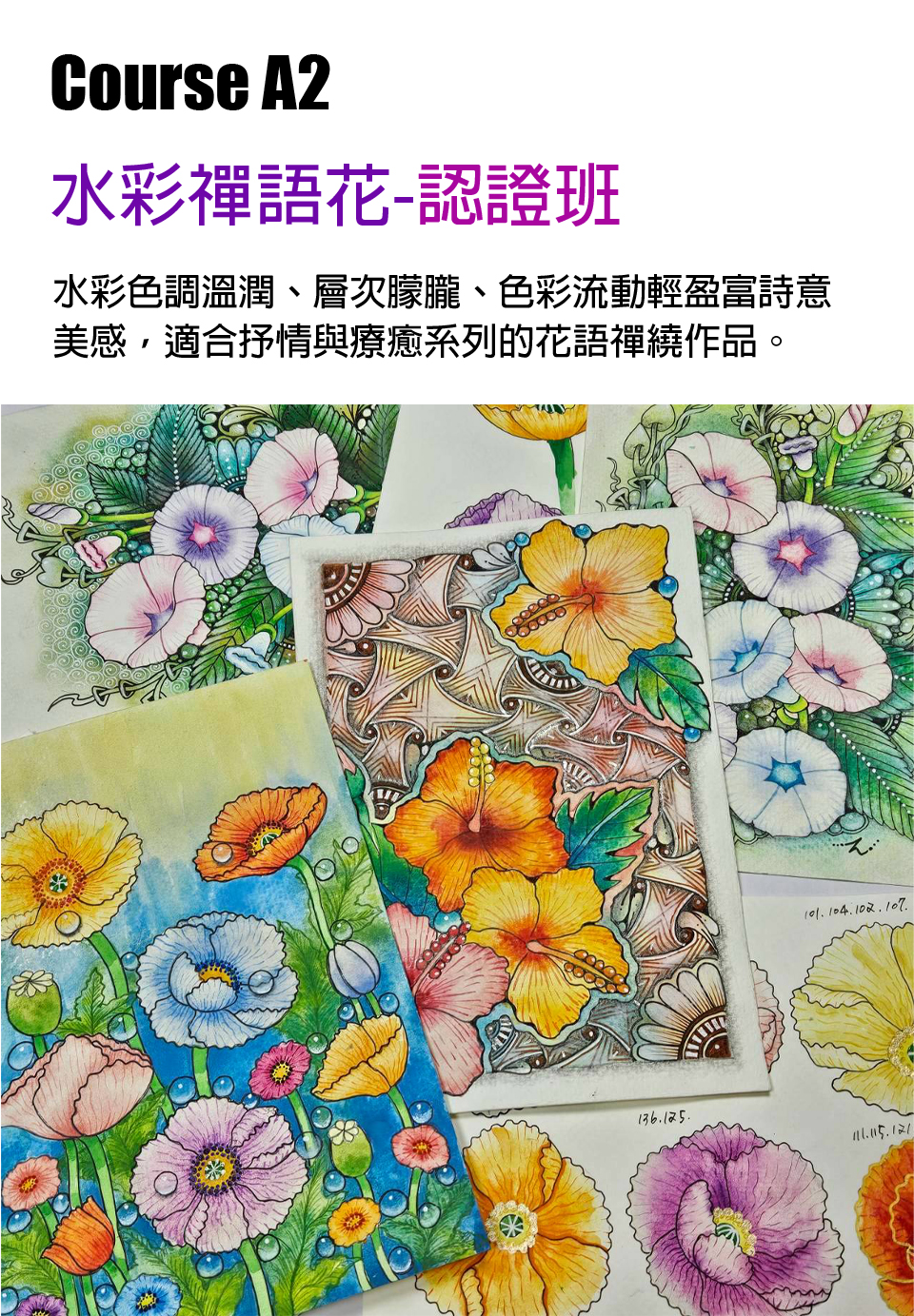 身心靈、曼陀羅、禪繞畫、禪繞畫延伸藝術如色鉛筆、水彩、粉彩等線上課程。
